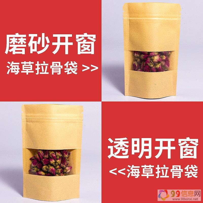 开窗牛皮纸自封袋主要将牛皮纸,PE膜 [4] (用普通设备制作夹链自封袋 [5] ),哑光磨砂膜,通过复合工艺将这几种材料压合在一起,形成美观大方的具有磨砂可视的复合袋 [6] 包装袋9~9~信~息~网。不开窗牛皮纸自封袋主要铝膜,牛皮纸,磨砂PE膜三层复合在一起,形成不可视不开窗口袋。八边封牛皮纸自封袋是通用模具将袋型做成立体包装袋,因牛皮纸立体袋有八条边而得名“牛皮纸八边封袋”9 9 信 息 网。