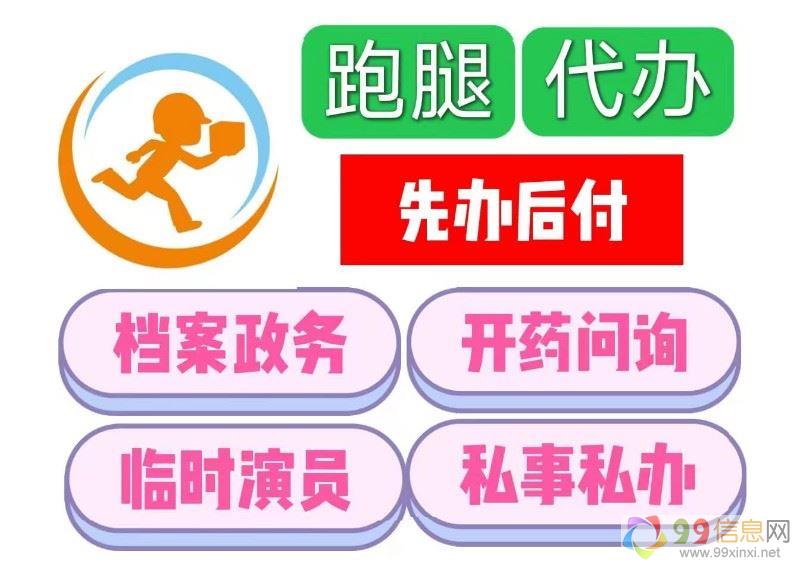 成帅跑腿代办有限公司是一家专注于事务处理的个性化服务团队9_9_x_i_n_x_i_n_e_t。涵盖生活和商务的各个领域,为客户提供;异地办事、办公、事务处理等各项无需客户本人亲临的事项委托代办,使客户足不出户即可实现各项需求。较大限度使客户分身有术,节省差旅费用。全方面商旅需要,一站式解决方案欢迎www.99xinxi.net。实现超高价比,异地办事再无忧。